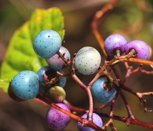 ノブドウがいい色に色づいてきました。 Google AI によりますと、ノブドウの実がカラフルで形が不揃いなのは、ノブドウミタマバエやブドウトガリバチといった昆虫の幼虫が寄生して「虫こぶ」を作っているためなのだとか。 ノブドウのカラフルな実は 虫こぶに…